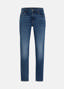 Delaware jeans slim fit fra Boss. Klassiske blå jeans med en smal pasform. De er fremstillet i en blød denim med stretch, hvilket er med til at give en optimal komfort og bevægelsesfrihed. Designet er klassisk med fem lommer: To stiklommer foran, en møntlomme, og to baglommer. De lukkes med knap og lynlås
